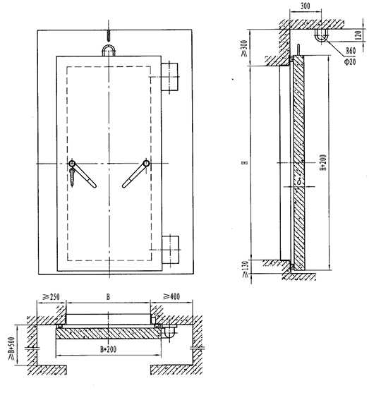 此類門的特點是門扇為鋼筋混凝土結構,具有固定門檻,密閉措施采用嵌壓梯形海綿膠條密封型式,密閉性能可靠,使用、維護方便,但門扇質量較重。