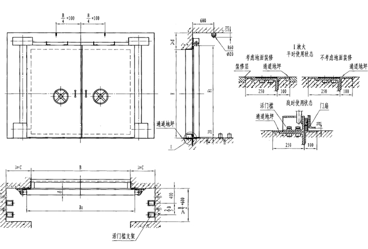 此類門的特點(diǎn)是平時不設(shè)門檻,地面平整,便于人員或車輛通行;戰(zhàn)時快速設(shè)置門檻,以滿足防護(hù)、密閉要求。