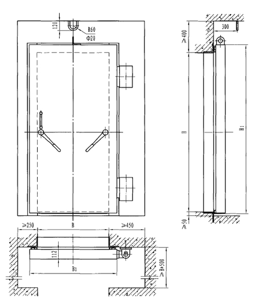 | 型號 | 門孔寬B | 門孔高H | B1 | H1 |